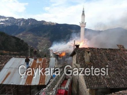 Bu gün sabah saat 10.00 sularında Taşören Köyü'ndeki tarihi camiide yangın çıktı. Tarihi cami başta olmak üzere caminin müştemilatında bulunan köy odası ve Kur’an Kursu tamamen yanarken camiye ait lojman ise yangından zarar gördü. Elektrik kontağından çıktığı tahmin edilen yangının fark edilmesiyle olaya müdahale eden vatandaşlar ve kısa zamanda yangın yerine ulaşan Çaykara Belediye itfaiyesi bir ara yangını kontrol altına aldı. Ancak itfaiyelerin suyunun bitmesi ve rüzgârın da etkisiyle yangın tekrar alevlendi. Dernekpazarı ve Cumapazarı itfaiyeleri daha sonra yangın yerine ulaştı ancak yapılabilecek herhangi bir müdahale kalmadı. Yangının çevredeki evlere sıçramaması için önlemler alındı. Vatandaşların, özellikle yaşlıların gözyaşları arasında yanan caminin sadece taş duvarları kaldı. Bununla birlikte kesme taştan yapılan mihrap da bu duvarların içinde ayakta duran tek tarihi eser. Tarihi işlemeli sekizgen köşeli ve üzerinde “Allah, Ebubekir, Ömer, Osman, Ali” yazılı iç göbek ile, el işlemeli minberi dış kapısı ve diğer süslemeler yandı.