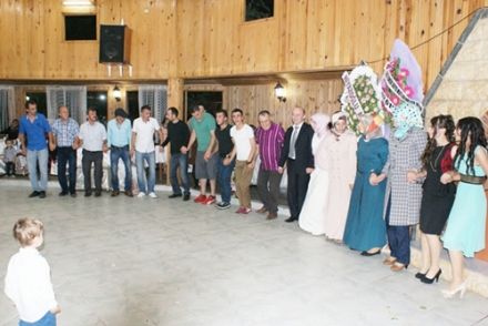 Yoğun katılımla yapılan düğünde, davetliler Kemençe eşliğinde horon oynadılar. Düğün pastasının kesiminin ardından genç çiftler düğüne katılanlarla birlikte gönüllerince eğlendiler.