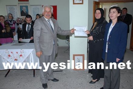 Protokol üyeleri konuşmalarında herşeyin eğitimle mümkün olduğunu ve kadınlarında birtakım eğitimleri alarak eşlerine destek olmalarının gerektiğini vurguladılar. Daha sonra dikiş nakış kursunu bitiren 19 Kadın kursiyerlere sertifikaları protokol üyeleri tarafından takdim edildi. Ardından kursiyerlerin kurs boyunca yaptıkları el emeklerini sergiledikleri serginin açılışı yapıldı.