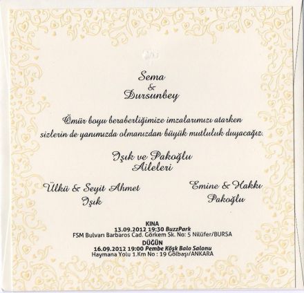Bursa'dan Ülkü ve Seyit Ahmet IŞIK'ın Çevre Mühendisi kızı Sema IŞIK'ın düğün törenlerine tüm köylülerimiz davetlidir.