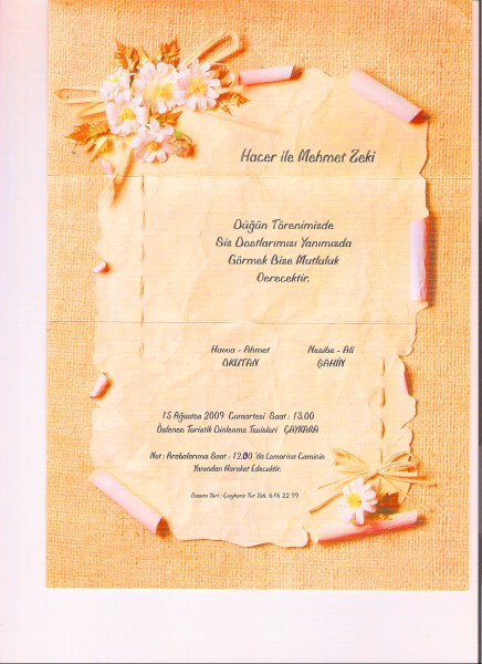 Şahin ve Okutan ailelerinin çocukları Mehmet Zeki ve Hacer, diyorlar ki ;Düğün törenimizde siz dostlarımızı yanımızda görmek bize mutluluk verecektir.